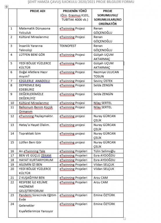 2020-2021 Eğitim-Öğretim Yılı eTwinning Projelerimiz