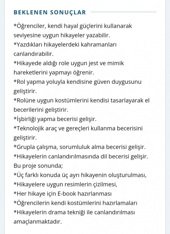 Öğretmenimiz Nuray GÜRCAN ÇELİK tarafından yürütülen Hikaye Yazma ve Canlandırma Projesi